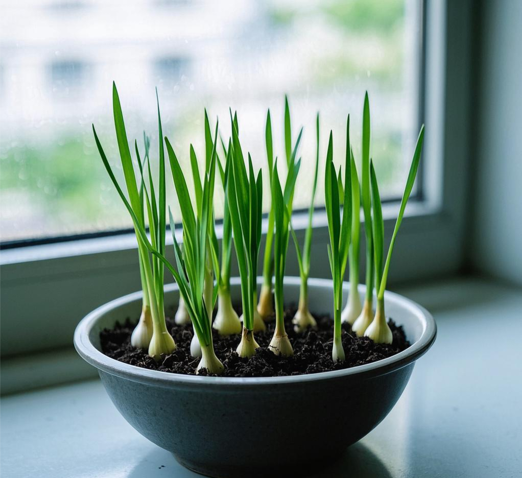 每到冬天,我家阳台上总会种上一碗蒜苗。说起来,蒜苗的种植也十分简单,只需要一个小碗或者碟子,撒上点土层浇点水,放上白嫩嫩的蒜瓣,蒜苗就可以茁壮成长了。