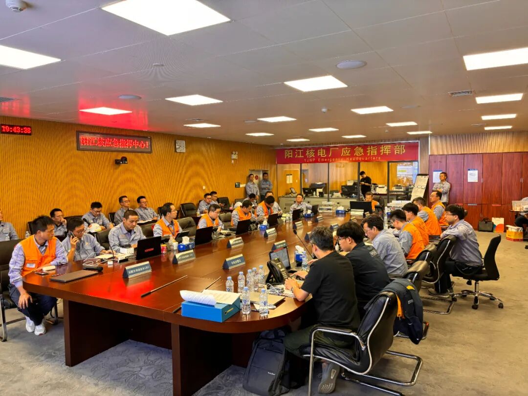 收到台风预警后,阳江核电基地密切关注台风动向,及时启动三防事件专项应急预案,多次组织召开防抗台风专题会议,对各机组运行状况、重大项目及检修工作可能受台风影响的事项进行研判,明确防御要领与关注要求,并对各部门、单位的响应行动进行全面部署和安排。阳江核电党委、总经理部班子成员,生态环境部华南核与辐射安全监督站现场监督员带队紧盯防台风关键事项,再检查、再部署应对工作。